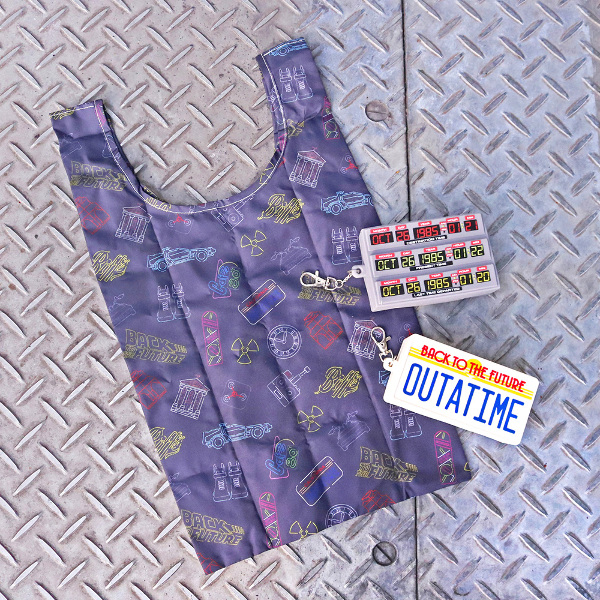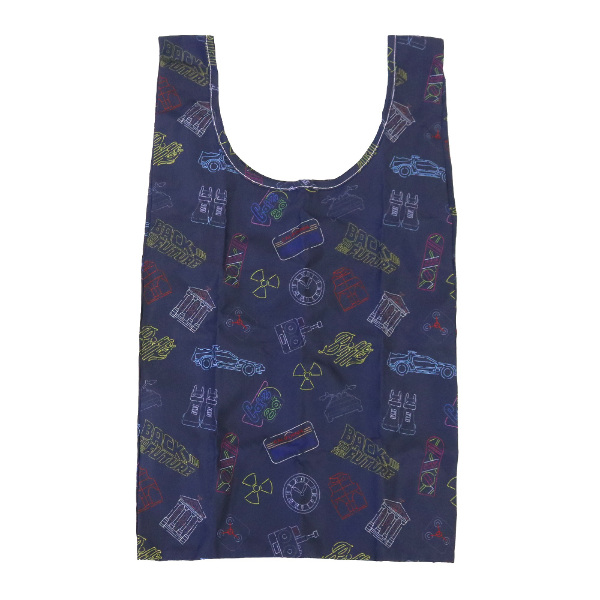 映画『バック・トゥ・ザ・フューチャー』の世界観を鮮やかに表現したファン必見のアイテム!エコバッグには映画を象徴するアイコンがカラフルに表現された総柄デザイン。