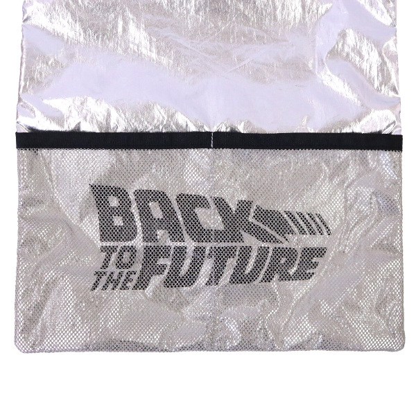 メタリック生地に『BACK TO THE FUTURE』のロゴを配置。