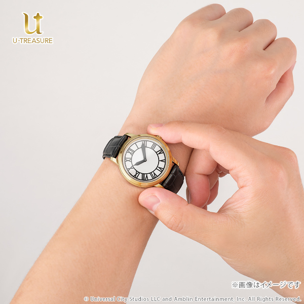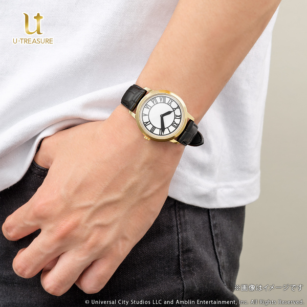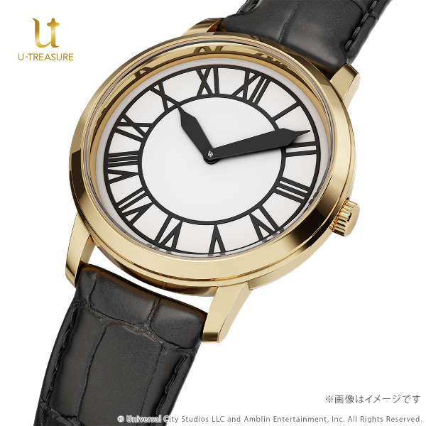 タイムスリップの鍵となる「ヒルバレーの時計台」をモチーフにした文字盤は、シンプルながらも映画のストーリーを想起させるデザイン。