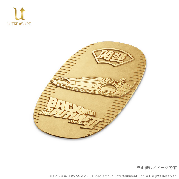 日本で縁起物として人気のある「小判」に、「Part2」の「タイムマシン」と作品ロゴをデザインしました。