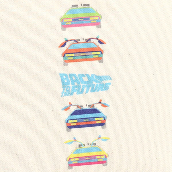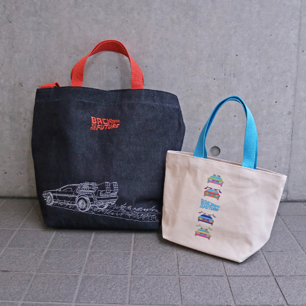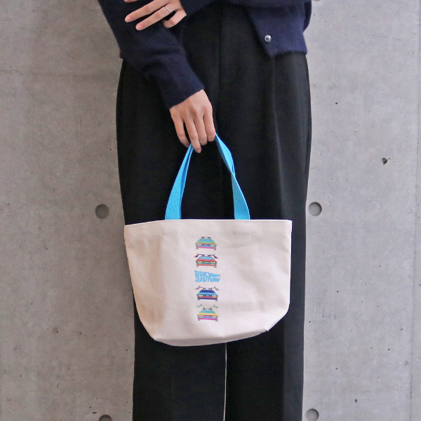横浜元町のオリジナルバッグブランド「キタムラ」と「バック・トゥ・ザ・フューチャー」のコラボレーションアイテム。ポップなカラーのタイムマシンイラストがかわいいミニトートバッグ。