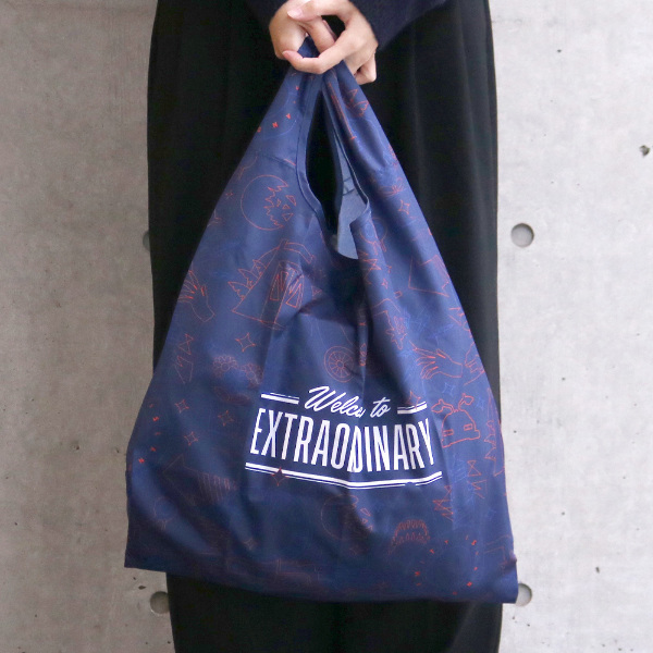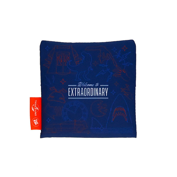 『Jurassic Park』『E.T.』『Back to the Future』『JAWS』の4作品を象徴するアートが総柄にデザインされたエコバッグ。