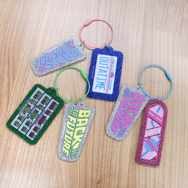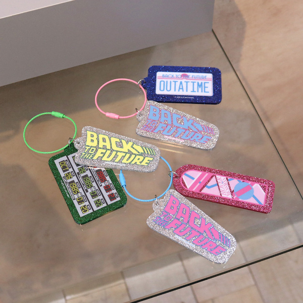 ラメが特徴的な2連キーホルダー。ロゴのデザインと、それぞれのモチーフのデザインがおしゃれです。