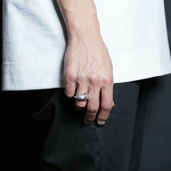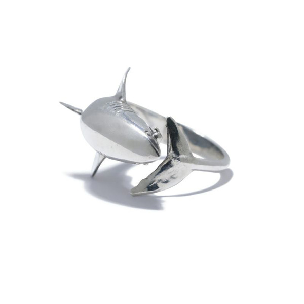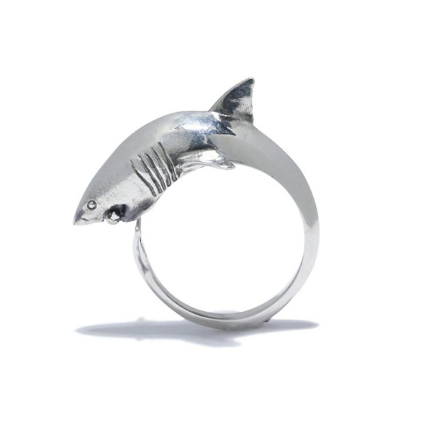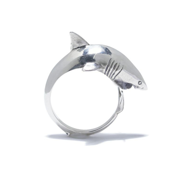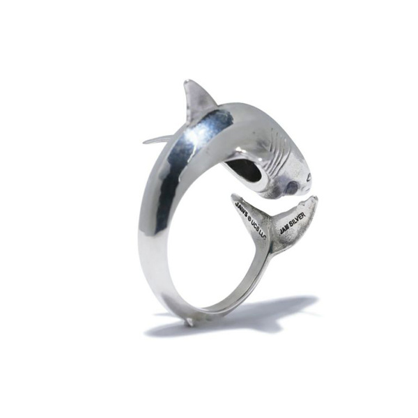 『ジョーズ』のサメを立体的に表現したリングは、躍動感を表現するためにエッジかつ、全体を奇麗な曲線でまとめました。フリーサイズ風の仕様となっていますので、付け心地は良好。サイズ展開豊富ですので、プレゼントやギフトにも最適なアイテムです。使い込むごとにボディのシルバーの良さでもある経年変化を楽しむことができます。