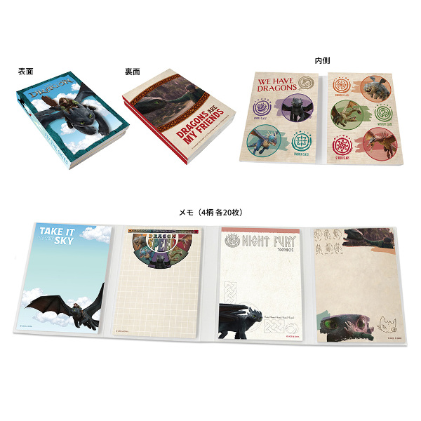 実写映画「ヒックとドラゴン」のパタパタメモ。折りたためるブック型のメモ帳です。メモは4柄各20枚入り!