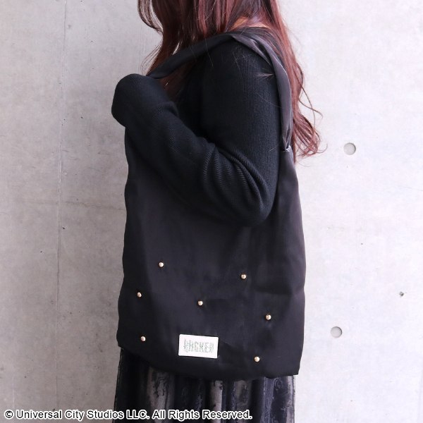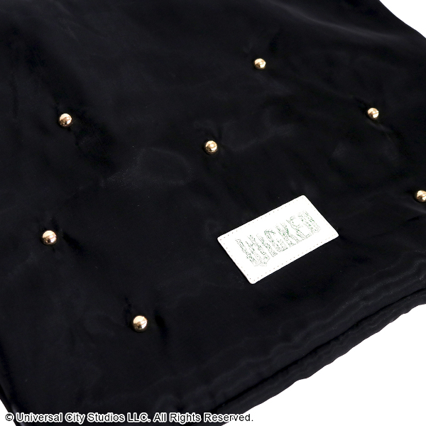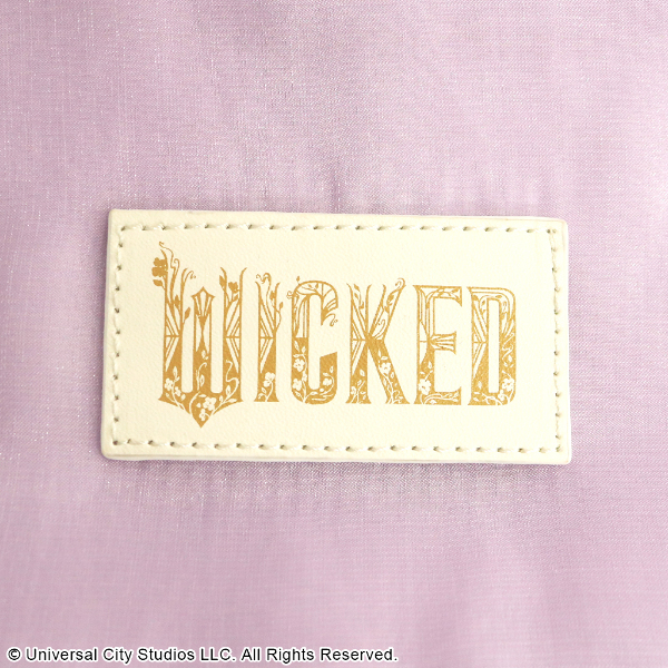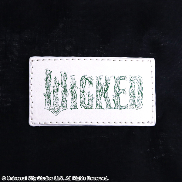 「エルファバ」と「グリンダ」、それぞれをイメージした「WICKED」のロゴをプリントしたフェイクレザーのパッチもワンポイント。