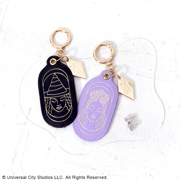 フェイクレザーにゴールドで表現された「エルファバ」と「グリンダ」がポイントのミラーチャームです。