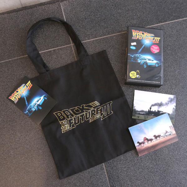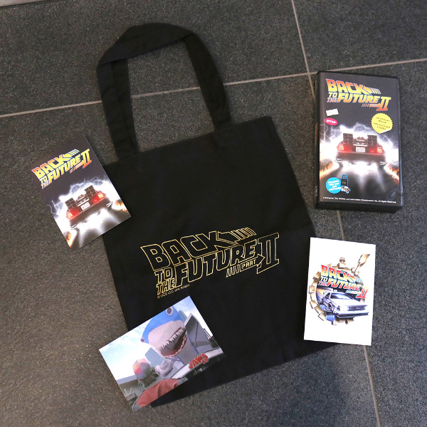 懐かしいVHSのケースにトートバッグとポストカード3枚がそれぞれ入ったセットです。