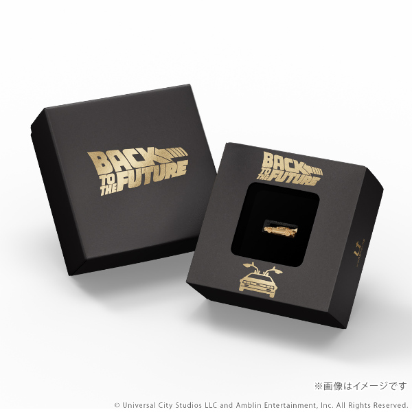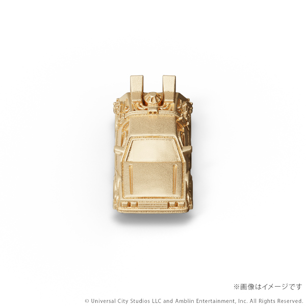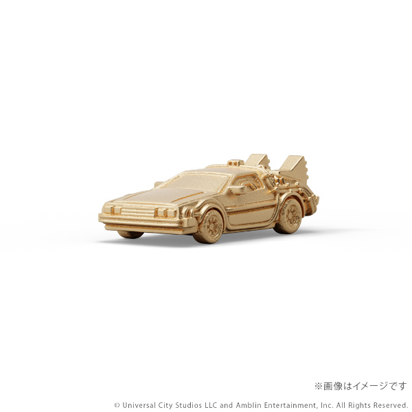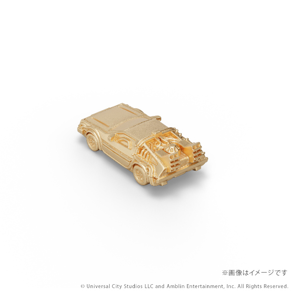 『バック・トゥ・ザ・フューチャー』シリーズに登場するタイムマシンを、K18イエローゴールド製のミニチュアサイズで再現。