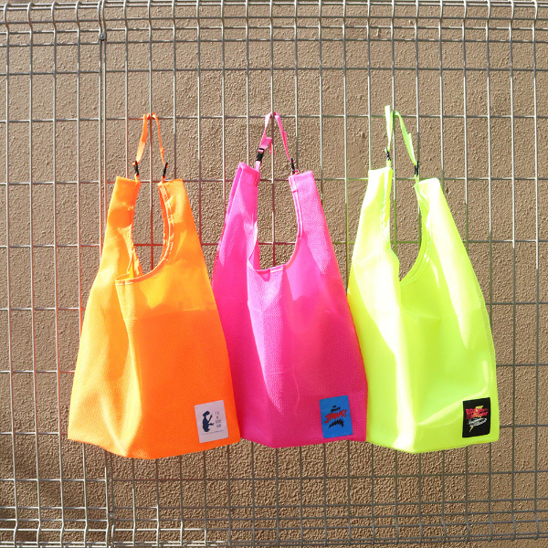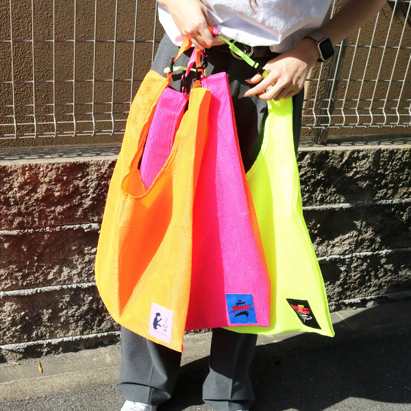 鮮やかなネオンカラーのオシャレなメッシュトートバッグ。